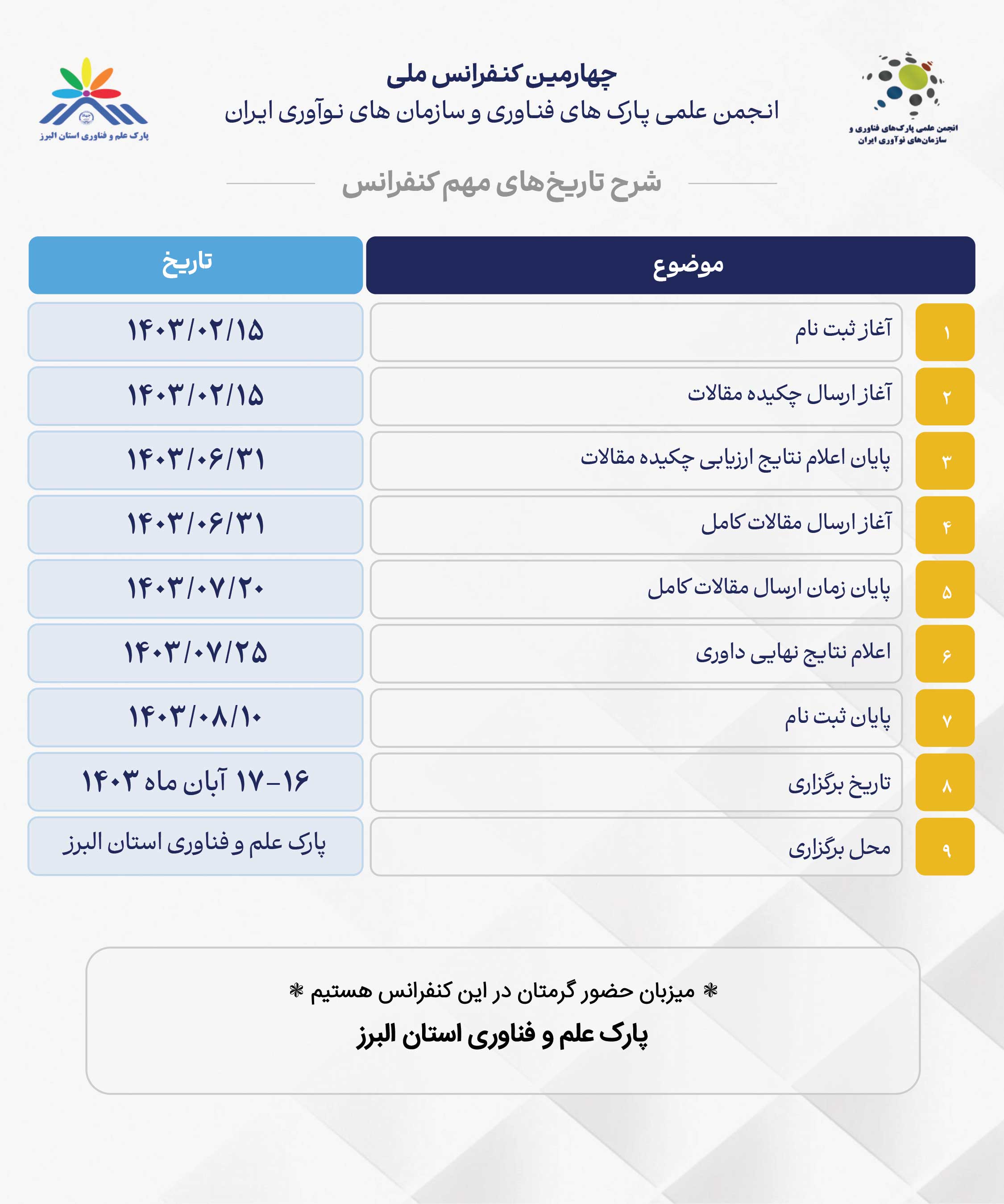 - انـجمن علمی پـارک های فنـاوری و سازمان های نـوآوری ایـران برگزار می کند.