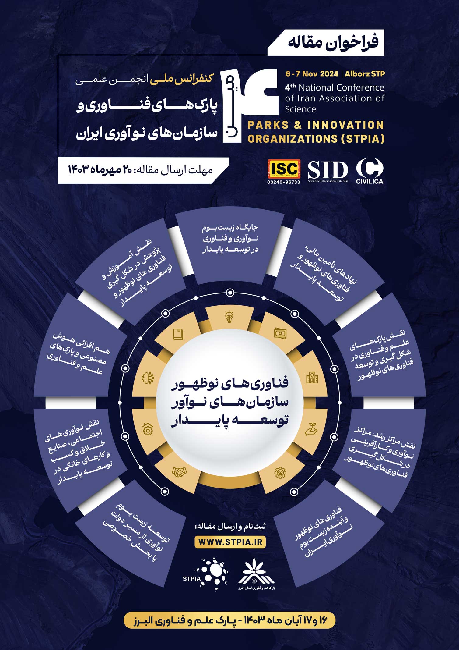 محورهای "چهارمین کنفرانس ملی انجمن علمی پارک های فناوری و سازمان های نوآوری ایران - فناوریهای نوظهور، سازمانهای نوآور، توسعه پایدار"