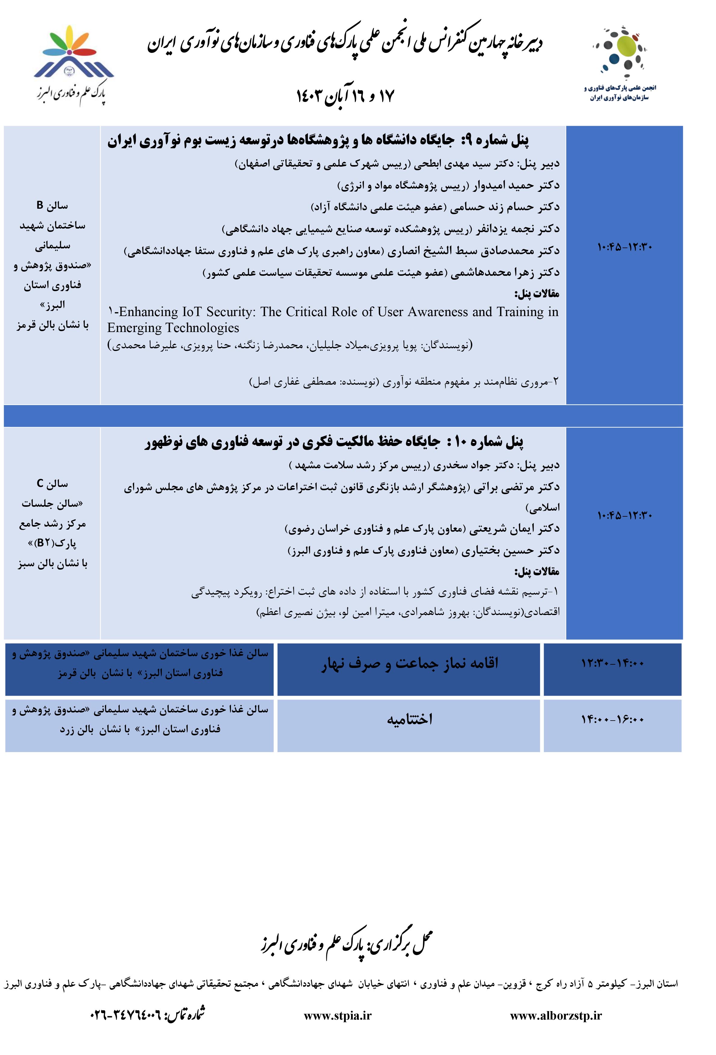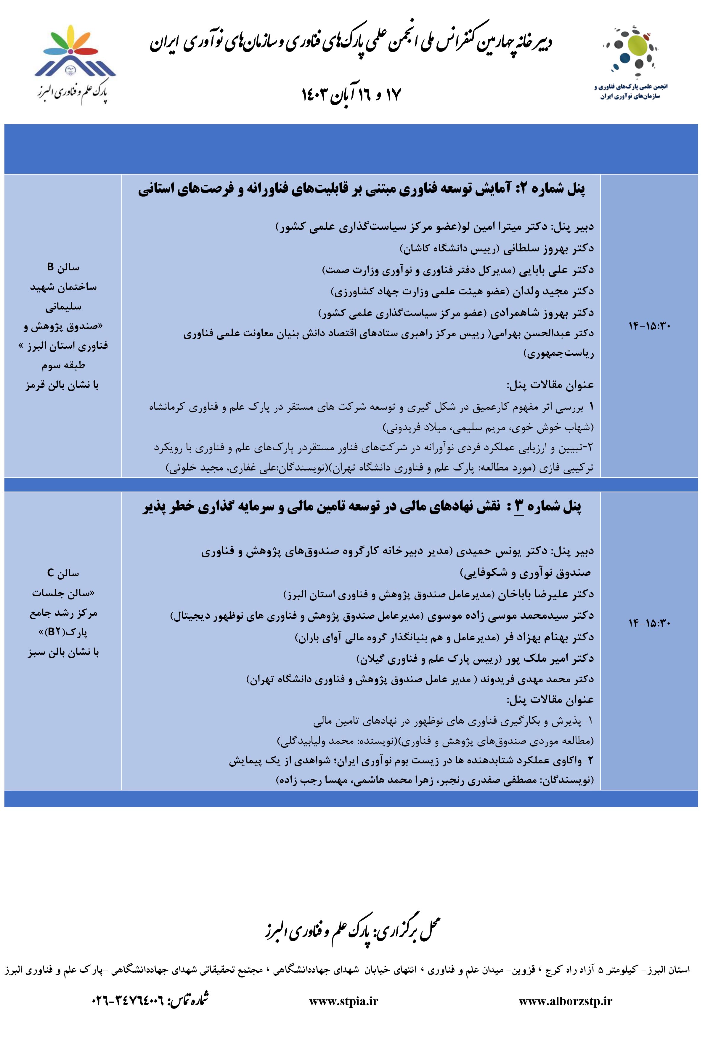 چهارمین کنفرانس ملی انجمن علمی پارک های فناوری و سازمان های نوآوری ایران - فناوریهای نوظهور، سازمانهای نوآور، توسعه پایدار